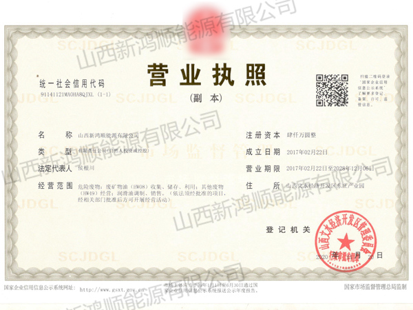 山西新鴻順能源有限公司成立于2017年,注冊資本4000萬元。在各級領導的關心幫助和社會各界鼎立支持下,已成為一家集廢礦物油收集、貯存、利用、銷售、服務為一體的綠色環(huán)保型企業(yè)。公司位于山西省文水縣,這里東臨汾河水,西依呂梁山。廠區(qū)坐落于省級園區(qū)——山西文水經濟開發(fā)區(qū)東莊產業(yè)園。公司周邊動力能源充足,所需煤氣、蒸汽及電力供應等生產條件十分便利。公司地理環(huán)境位置優(yōu)越,緊靠省道320線,距太中銀鐵路文水站5公里,距太汾高速公路10公里,區(qū)域周邊交通便利、通訊暢達。